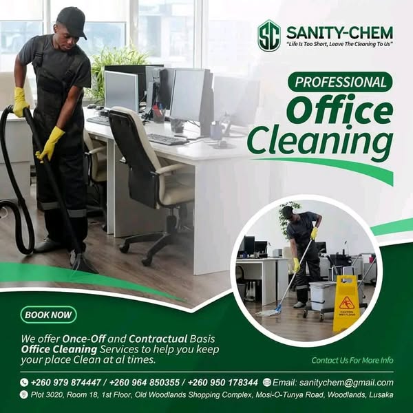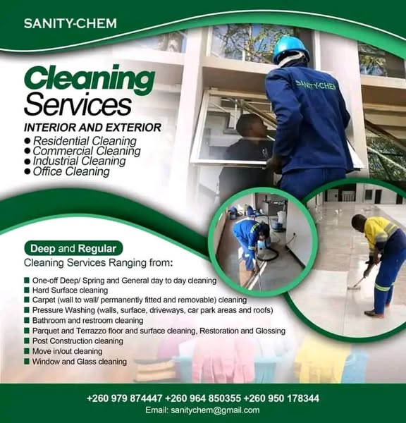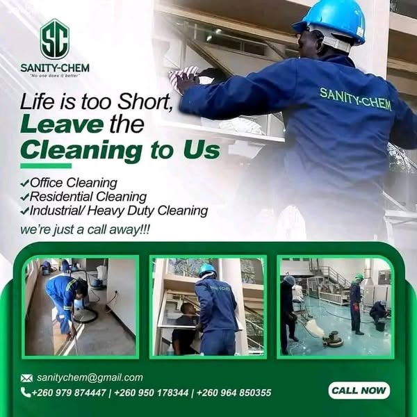 搜索关键词 cleaning services, cleaning products, Lusaka Zambia, commercial cleaning, domestic cleaning, floor cleaning, carpet cleaning, window cleaning, pressure washing, Sanity-chem Limited优势 Wide range of cleaning services and products,Both commercial and domestic services,Multiple contact options provided