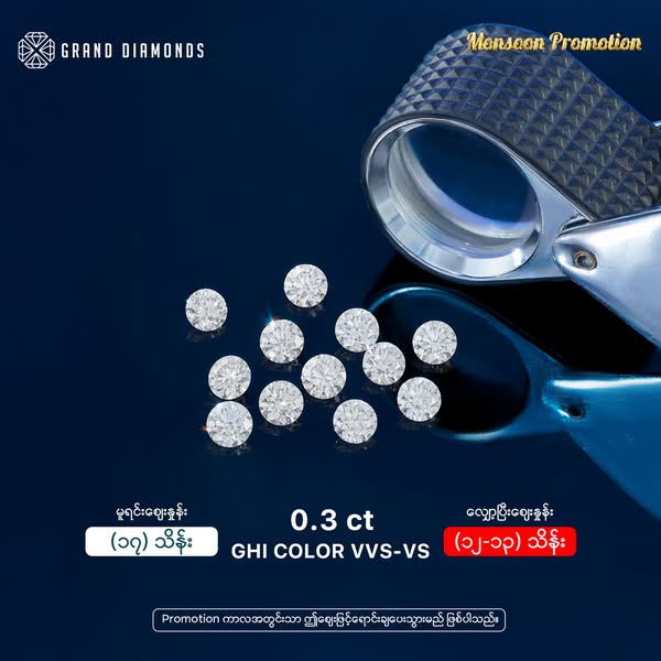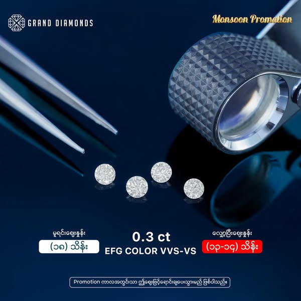 ‼️💎 Loose Diamond အပွင့်ကြီးတွေကို အတန်ဆုံးစျေးနှုန်းတွေနဲ့ ရောင်းချပေးမယ့် "𝐆𝐫𝐚𝐧𝐝 𝐃𝐢𝐚𝐦𝐨𝐧𝐝𝐬" စိန်တိုက်ရဲ့ 𝐌𝐨𝐧𝐬𝐨𝐨𝐧 𝐏𝐫𝐨𝐦𝐨𝐭𝐢𝐨𝐧 ကြီး 💎‼️