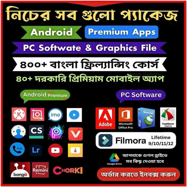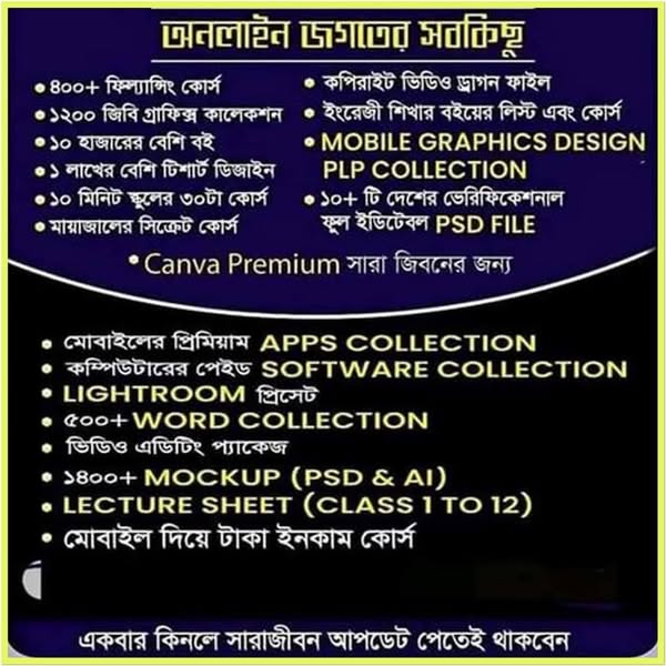 আপনার পছন্দের ফ্রিল্যান্সিং কোর্স, গ্রাফিক্স ফাইল, প্রিমিয়াম সফটওয়্যার, বই, ও অনেক কিছু এক প্যাকেজেই! 🛠️