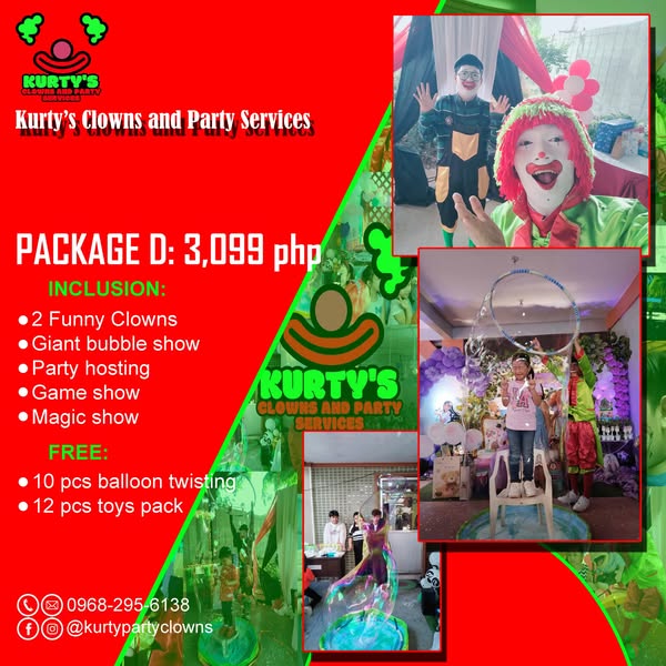 #KurtysClownsandPartyServices #KurtysPartyNeeds #KurtysPartyClowns #clowns #magicians #facepainting #puppetshow #talkingmask #giantbubbleshow #balloondecoration #mascots #photobooth #photographer #basicsoundsystem