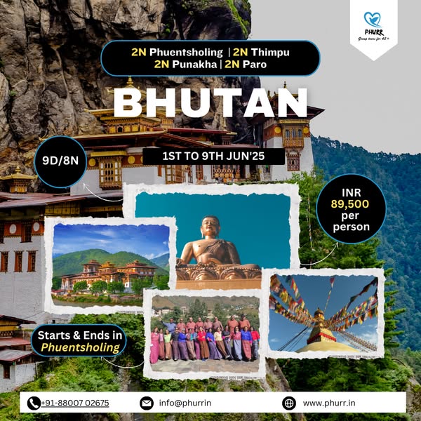 Travel stress-free with a like-minded group, enjoying a leisurely paced itinerary and full assistance throughout. Whether for yourself or as a gift for your parents, we ensure a comfortable and memorable journey. Call/WhatsApp us at (+91) 9220583232 / 9711596164 or email info@phurr.in to initiate your booking today!s