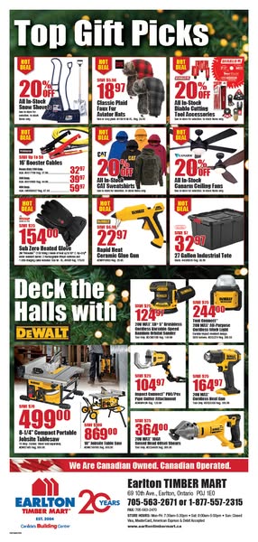 ’Tis the season for incredible deals at Earlton Timber Mart! From Nov 27 to Dec 24, find everything you need to tackle your DIY projects and make holiday magic at home.