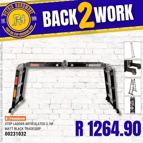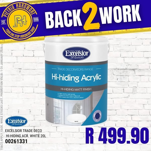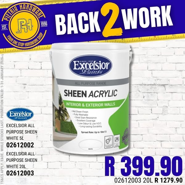 Promotion valid 2-31 January 2025. Your one-stop DIY, building materials and Hardware store. 26 Reitz Street, Meyerton