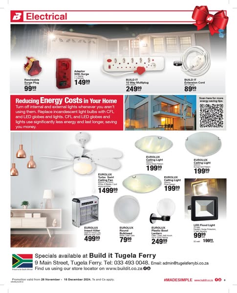 搜索关键词 Christmas deals, Home building, Tugela Ferry, Buildit specials, Festive season, KwaZulu-Natal, Building materials, Home improvement, Limited time offer, Hardware supplies优势 Festive Season Specials,Deals to finish home building projects,Limited-time offer