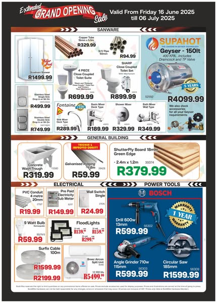 搜索关键词 BuildRite Mandeni, hardware store opening, affordable building materials, Mandeni hardware, sundumbili hardware, great quality hardware, grand opening special, limited time offer, hardware store, building supplies优势 Affordable Prices,Great Quality,Grand Opening Specials