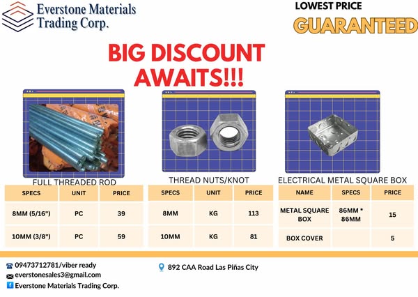 搜索关键词 construction materials, cable tray, discount construction, reseller opportunity, manila construction supplies, metro manila construction, everstone material trading, construction supplies philippines, 20% off construction, lalamove same day delivery优势 Up to 20% Off,Available for Resellers,Multiple Payment Options,Same Day Delivery