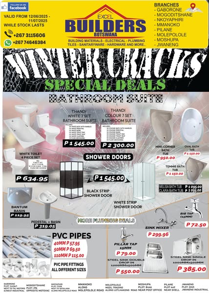 "❄️ Winter is here – and so are the hot deals! 🔥 Kick off June with our Winter Start Special – exclusive offers to warm up your season. Don't miss out!" EXCEL BUILDERS BOTSWANA !!