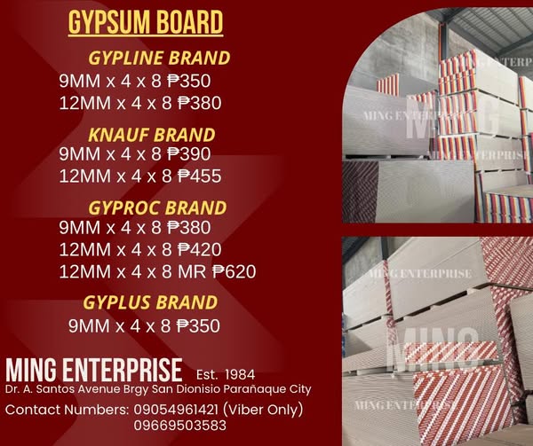搜索关键词 construction materials, building supplies, lowest prices, wholesale retail, philippines construction, building material supplier, fresh stock, convenient pickup, Ming Enterprise, construction materials parañaque优势 Lowest prices guaranteed,Always fresh stock,Fast-moving supply,Day & night pickups,Wholesale & retail buyers welcome,Free gifts all year round,Physical store for safe transactions