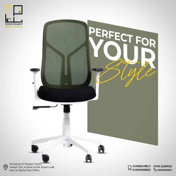 搜索关键词 office chair, ergonomic chair, desk chair, comfortable office chair, modern office chair, Wood Project furniture, back support chair, elegant office chair, Egypt furniture, Zahrat Al Madaen优势 Sleek design,Full back support,User-friendly features,Comfort and elegance