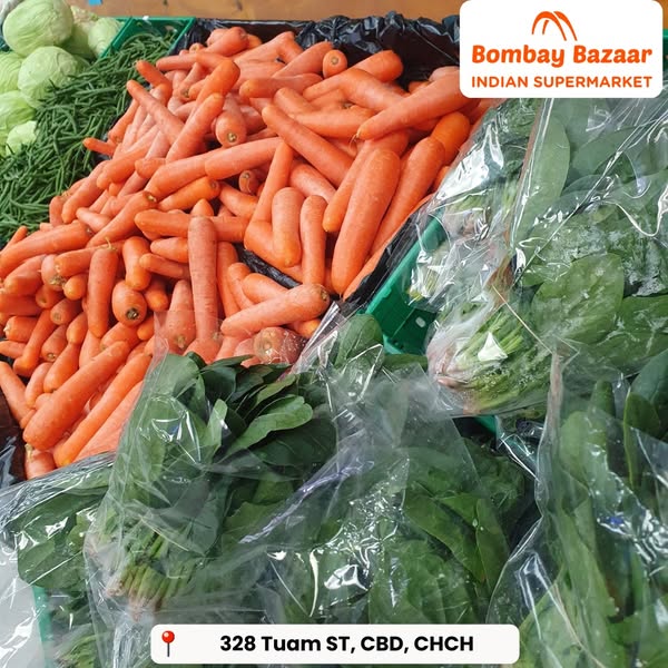 搜索关键词 fresh vegetables, Bombay Bazaar, Christchurch groceries, NZ grown, Fiji grown, healthy cooking, grocery store, Tuam Street, CBD location, colorful produce优势 Fresh produce,Colorful display,NZ & Fiji-grown,Convenient location