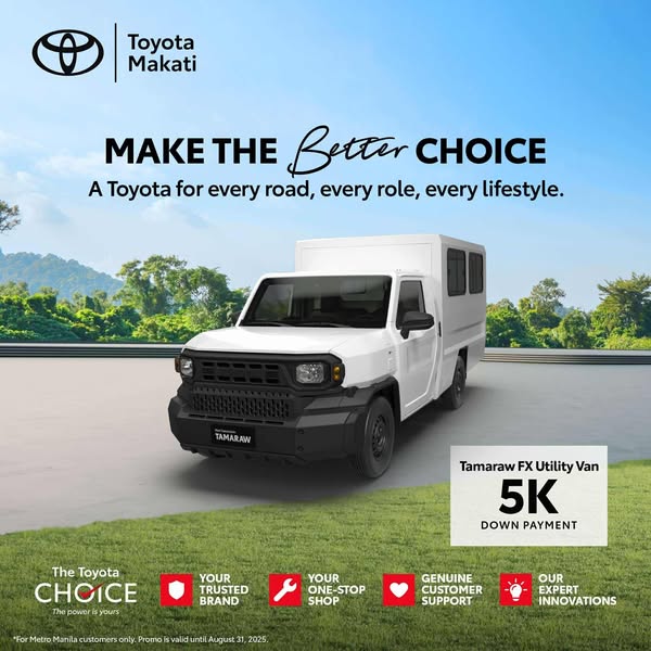 搜索关键词 Tamaraw FX, utility van, food truck, low downpayment, vehicle promo, online application, Toyota Makati, commercial vehicle, flexible payment, dropside truck优势 Low downpayment,Flexible payment terms,Easy online application,Big savings & discounts