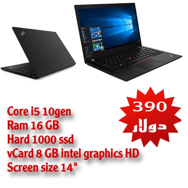 ٦. لابتوب lenovo ( Core i5 جيل عاشر/ الرام 16 / الهارد 1000ssd / حجمها 14 / كارت شاشة 8 كيكا )