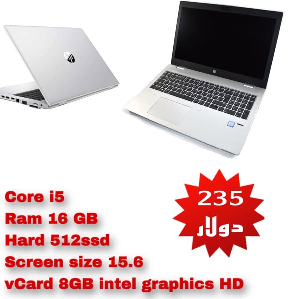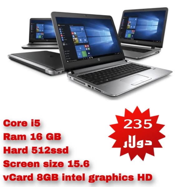 ١. لابتوب HP ( Core i5 جيل سادس/ الرام 8 / الهارد 256ssd / حجمها 14 / كارت شاشة 4 كيكا )
