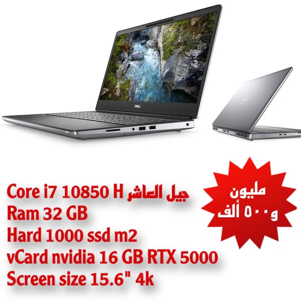 ٧. لابتوب Dell ( Core i7 جيل العاشر / الرام 32 / الهارد 1000ssd / حجمها 15.6 / ( nvidia RTX 5000 16GB )