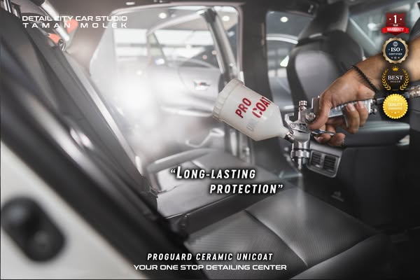 搜索关键词 car detailing, paint protection, ceramic coating, auto detailing johor bahru, PPF Malaysia, car care products, car scratch repair, car UV protection, hydrophobic car coating, Proguard Ceramic Unicoat优势 PPF: Protects against oxidation, scratches, stone chips,PPF: Self-Healing Technology,PPF: Up to 5 Years Warranty,PPF: Hydrophobic Brilliance, Anti-Yellowing,Ceramic Coating: Protection from Harmful UV Rays,Ceramic Coating: Protection from Chemical Stains,Ceramic Coating: Ease of Cleaning,Proguard Ceramic Unicoat: Water Repellent, Shininess