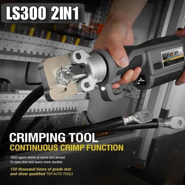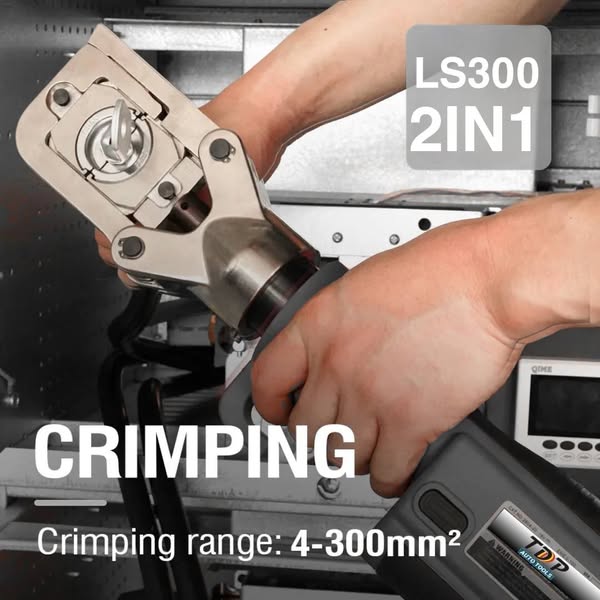 รุ่น LS 300 2IN1 แรงย้ำมากถึง 6ตัน เป็นเครื่องย้ำและตัด สายไฟอัตโนมัติ สามารถย้ำได้ 4-300 Sqmm.