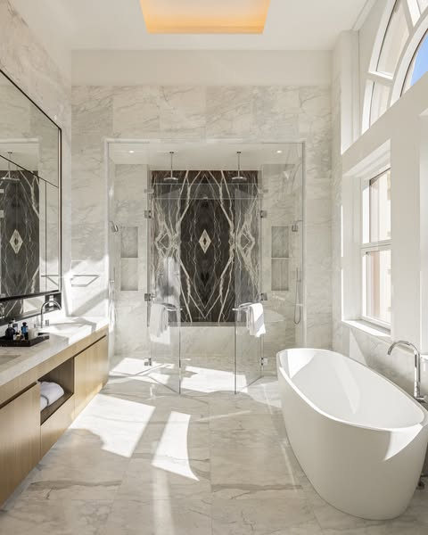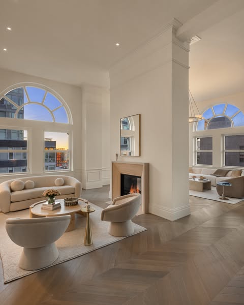 Penthouse West, also known as the Clock Tower Penthouse, at @108_leonard is a love story of timeless elegance and luxurious modernity. This 5-bedroom, 5-bathroom, plus 2- powder-room, duplex makes a grand first impression with an opulent 34x33-square-foot great room with ceilings soaring more than 15.5-feet, dramatic arched windows, and a sculptural double-sided fireplace. The bespoke chef’s kitchen, magnificent primary suite and ensuite that features a 6-foot freestanding tub and double shower wrapped in bookmatched Calacutta black marble and glass, make every aspect of daily life in this home feel indulgent. Book your private tour via the link below: