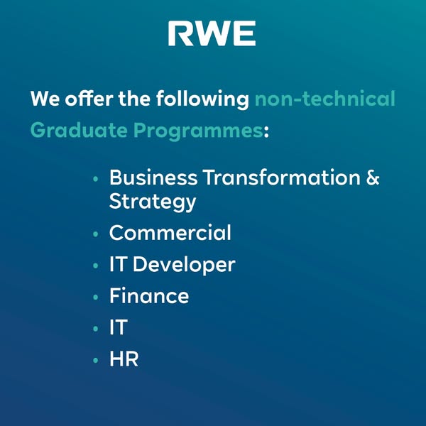 搜索关键词 RWE graduate programme, energy career, graduate opportunities, talent development, RWE recruitment, energy industry jobs, graduate entry, successful career path, RWE career, energy sector recruitment优势 Foundation for successful career,Talent development,Opportunities at RWE