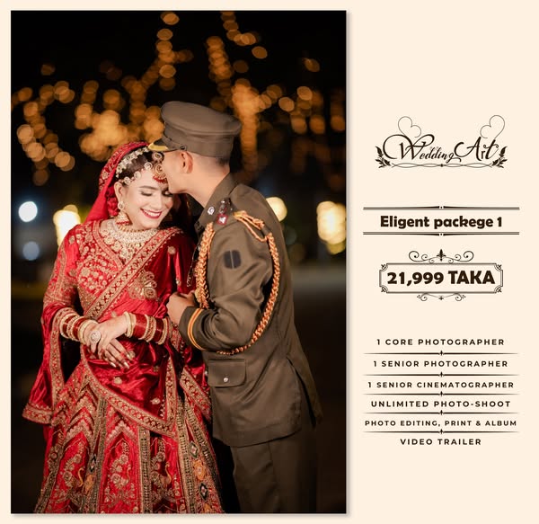 # Elegant Pack 1 : 1 Core Photographer + Senior Photographer + 1 Senior Cinematographer = 21,999 Taka Only.