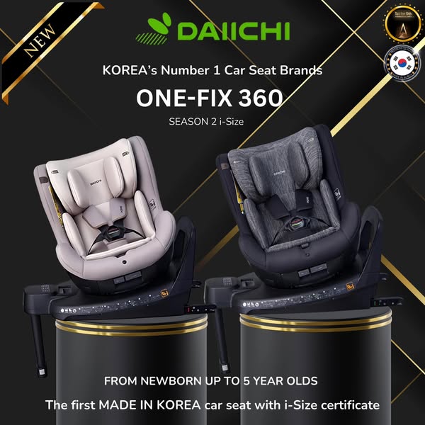 🎖️កៅអីសុវត្តិភាព Daiichi One-Fix 360 Season2 i-Size ជាកៅអីរថយន្តប្រើបានរយៈពេលយូរ ជាមួយក្មេងចាប់ពីកើតរហូតដល់អាយុ ៥ឆ្នាំ។
