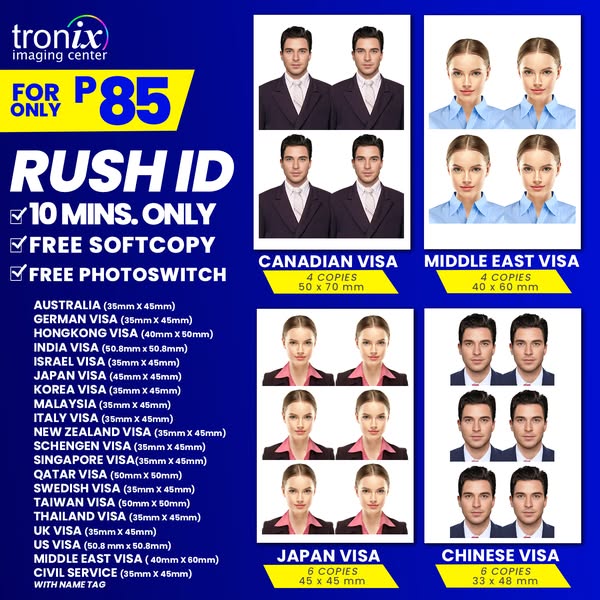 Looking for ID photos, Studio Portraits, or Digital Printing Services? Visit 𝐓𝐫𝐨𝐧𝐢𝐱 𝐈𝐦𝐚𝐠𝐢𝐧𝐠 𝐂𝐞𝐧𝐭𝐞𝐫'𝐬 branch at 𝐓𝐑𝐎𝐍𝐈𝐗 𝐒𝐌 𝐀𝐏𝐀𝐋𝐈𝐓 for all your photo needs!"
