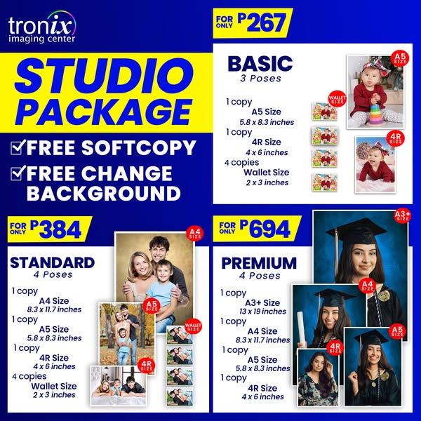 Looking for ID photos, Studio Portraits, or Digital Printing Services? Visit 𝐓𝐫𝐨𝐧𝐢𝐱 𝐈𝐦𝐚𝐠𝐢𝐧𝐠 𝐂𝐞𝐧𝐭𝐞𝐫'𝐬 newest branch at Visit us at 𝐓𝐑𝐎𝐍𝐈𝐗 𝐑𝐎𝐁𝐈𝐍𝐒𝐎𝐍𝐒 𝐌𝐀𝐋𝐀𝐁𝐎𝐍 located at 2nd Floor Bridgeway for all your photo needs!"