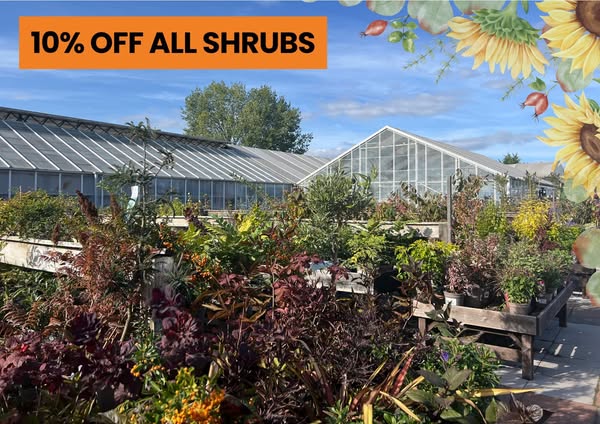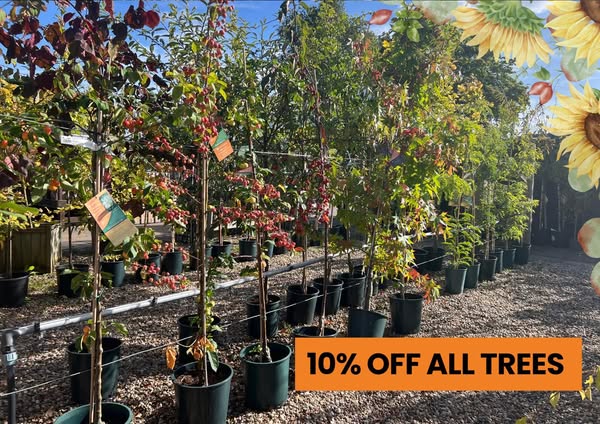 10% off all Shrubs & Trees offer will end after bank holiday Monday & excludes perennials, bedding and soft fruit.