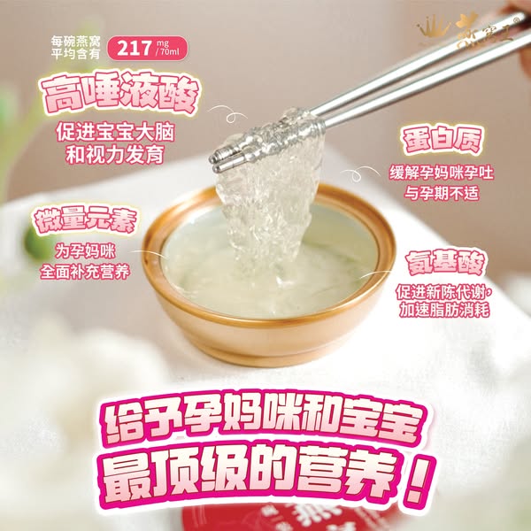 燕窝一直以来是孕妇营养补品中的【黄金级存在】✨,但也有很多孕妈咪担心:“燕窝是不是智商税?” 燕窝中最珍贵的成分 #唾液酸,对宝宝的🧠大脑发育、神经连接、智力记忆力发展都有显著帮助!同时还能帮助孕妈缓解孕吐、提升免疫力、改善皮肤状态,让孕妈咪保持好气色好状态!