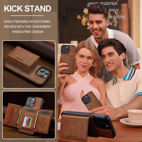 搜索关键词 iphone leather case, samsung leather case, magsafe phone case, detachable card holder, madagascar delivery, phone accessories, phone protection, premium leather, shockproof case, scratch resistant优势 Vrai cuir qualité supérieure (High-quality genuine leather),Résistants aux chocs et aux rayures (Shock and scratch resistant),Charge Magsafe magnétique (Magnetic Magsafe charging),Porte carte détachable (Detachable card holder)