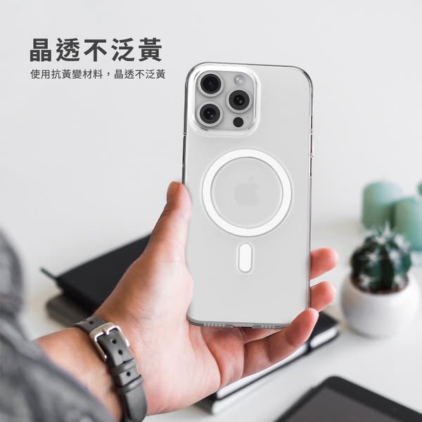 Air Jacket Mag,輕薄設計,使用Tritan 無雙酚A 材質,晶透不泛黃,搭配原廠磁圈,MagSafe磁吸充電完美對位,可搭配磁吸皮革卡套和其他磁吸配件!