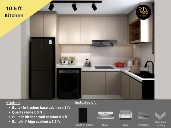 🍳 厨房升级:包括Hood & Hob(电磁炉)、单槽水槽及水龙头、顶级耐用Quartz石台面