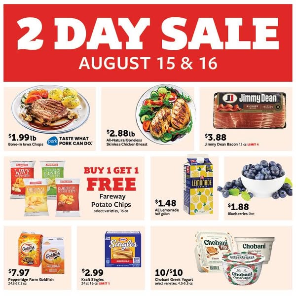 搜索关键词 Fareway grocery deals, Davenport Fareway, grocery sale, 2-day sale, BOGO deals, ice cream sale, chicken breast, Iowa Chops, Jimmy Dean Bacon, Pepperidge Farm Goldfish优势 Discounted prices on various grocery items,Limited-time 2-day sale,Variety of product categories represented,BOGO FREE offers