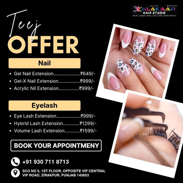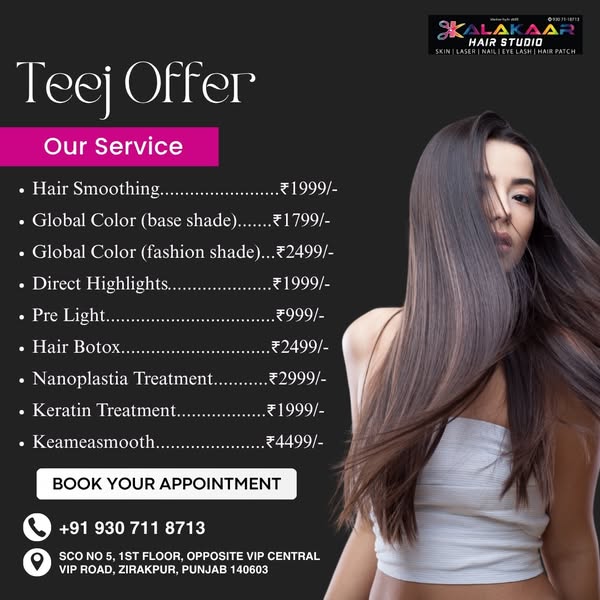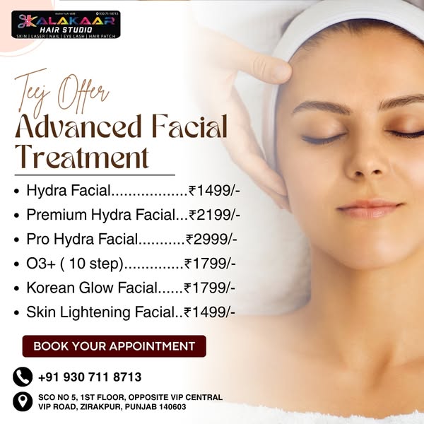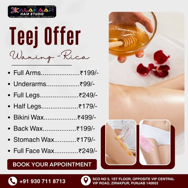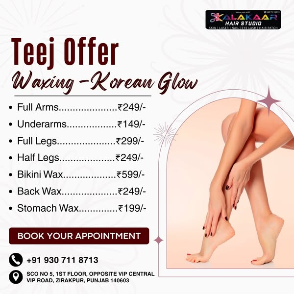 ✨ Smooth Skin, Unbeatable Prices! ✨ Say goodbye to unwanted hair with Kalakaar Hair Studio's exclusive Laser Offers! 🔥 Face, Body, Bikini & More – Starting at just ₹699! 📍 Visit us in Zirakpur & glow with confidence! 📞 Call now: +91 930 711 8713 📍 SCO No. 5, 1st Floor, Opposite VIP Central, VIP Road, Zirakpur, Punjab #LaserHairRemoval #ZirakpurSalon #SmoothSkinGoals #KalakaarHairStudio #LaserDeals #SkincareSpecial