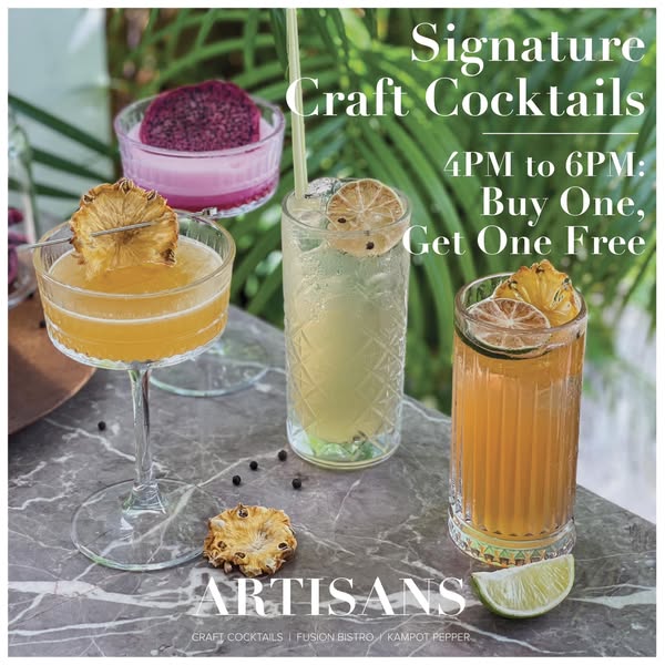 搜索关键词 Kampot happy hour, riverside cocktails, craft cocktails, fusion bistro, sharing boards, Kampot pepper, restaurant promotion, Artisans Kampot, happy hour discount, sunset happy hour优势 Special prices during Happy Hour,Riverside location,Craft Cocktails,Sharing Boards,Fusion Cuisine