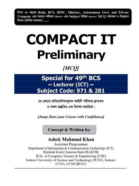 搜索关键词 BCS exam preparation, ICT lecturer exam, MCQ book, IT job solution, Compact IT Preliminary, BCS ICT Guide, ICT Exam Book, MCQ practice, BCS preparation 2025, PSC syllabus优势 Specifically designed for MCQ preparation for BCS and ICT lecturer exams.,Updated according to the new PSC syllabus.,Includes explanations for past IT exam questions.,Provides practice MCQs and model tests for self-assessment.,Covers syllabus for bank IT jobs and other IT related jobs.,Contains website based MCQs from various popular platforms.,Includes solutions to 81+ sets of IT exam MCQs from 2012 to August 2025.