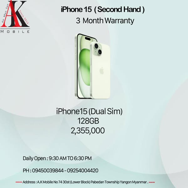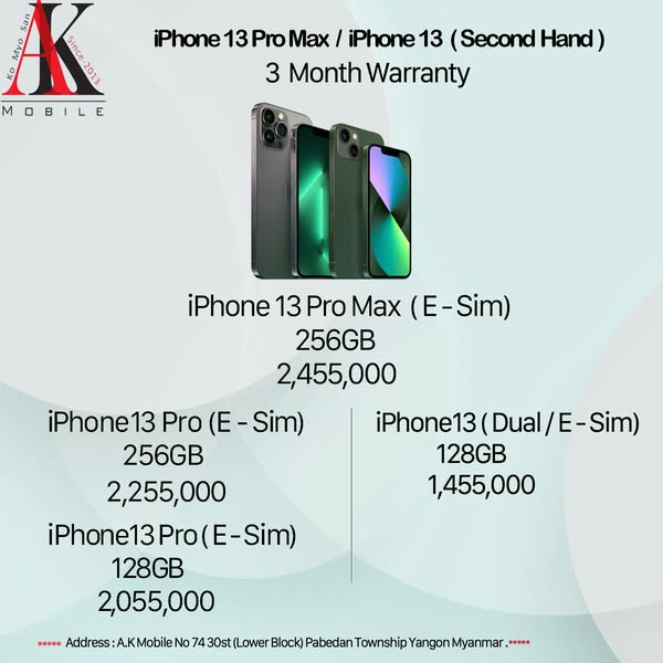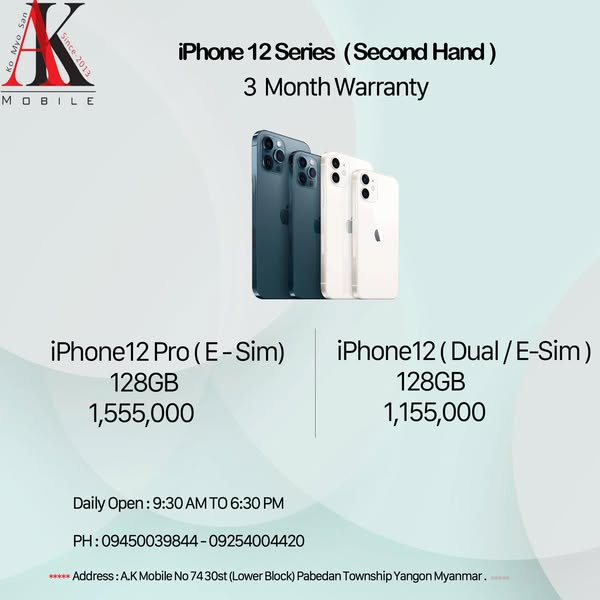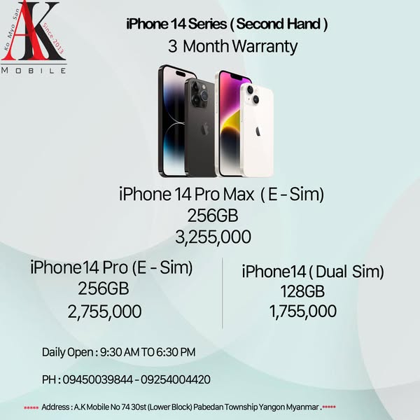 Price List တွင် တင်ထားသောပစ္စည်းများ၀ယ်ယူလိုပါကလိုအပ်သော Model / Color / Storage တို့ကို ဖုန်းဖြစ် ကြိုတင် ဆက်သွယ် မေးမြန်း ပါက ပစ္စည်းလက်ကျန်ရှိမရှိကို အတိအကျ ပြန်လည် ဖြေဆိုပေးသွားမည်ဖြစ်ပါသည်။