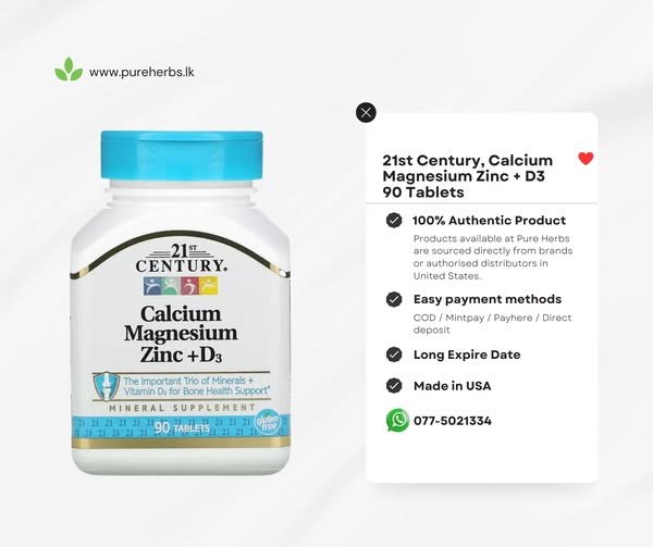 21st Century- Calcium Magnesium Zinc + D3- 90 Tablets,