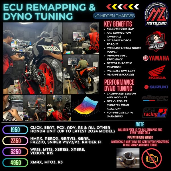 ‼️ ECU Remapping & Performance Dyno Tuning andito na! Same ang result mapa dyno bed man or in actual road. Bitin kaba sa takbo mo? Gusto mo ng mas maarangkada at may dagdag sa perfomance kahit stock? Nagpalit ng pipe at kailangan ng AFR Correction? REMAP na natin yan! On the spot remapping and tuning with your base map, current sensor data and afr correction (hindi copy paste). Stock ecu, racing ecu, kargado, retune, refile available dito.