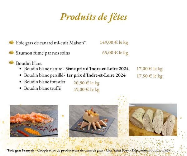 Menus de Fêtes 2024 disponibles du 7 dec 2024 au 4 janv 2025 !