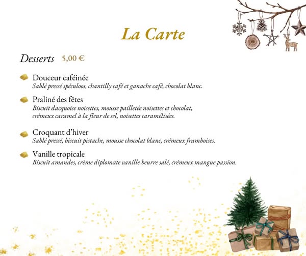 Menus de Fêtes 2024 disponibles du 7 dec 2024 au 4 janv 2025 !