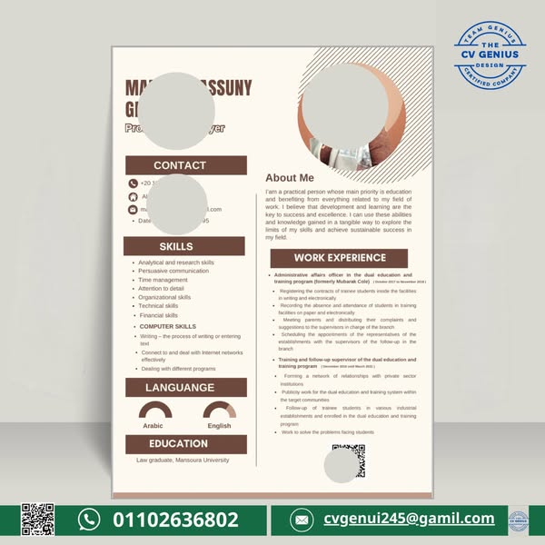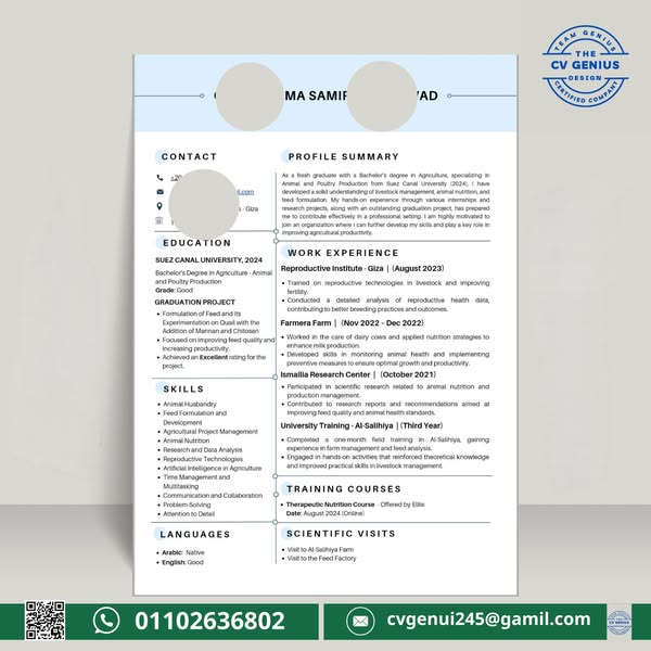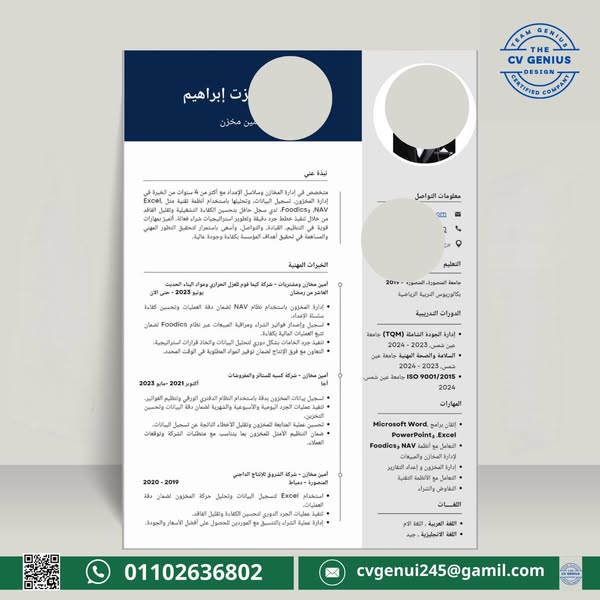✅ كل CV عندنا بيتصمم بناءً على بياناتك وخبراتك، مش مجرد قوالب جاهزة، علشان كل HR بيقيمك من الـ CV الخاص بيك. لازم يكون مصمم بعناية لتجنب الأخطاء، وإحنا بنسلط الضوء على نقاط قوتك علشان تظهر لأصحاب العمل وتكون مميزًا بين المتقدمين.