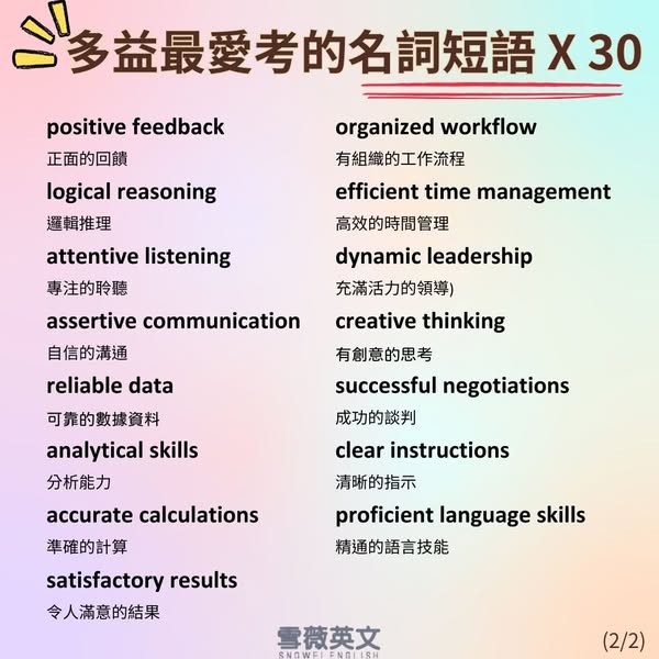 ☃️ 多益考試最愛考的名詞短語 x 30來啦!