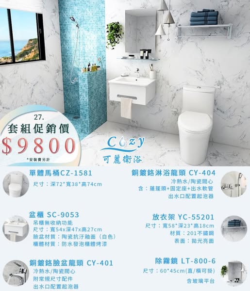 搜索关键词 Cozy bathroom, bathroom sets, custom bathroom furniture, ceramic washbasin, VitrA Europe, affordable bathroom, Taiwan bathroom,五股衛浴, 可麗衛浴套組优势 高CP值套組,多種材質選擇 (陶瓷, 發泡板, 橡木),可訂製浴櫃,VitrA歐洲衛浴品牌合作