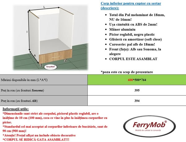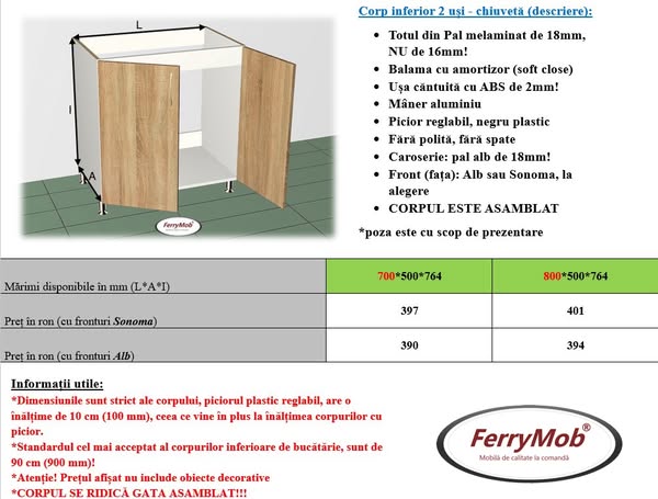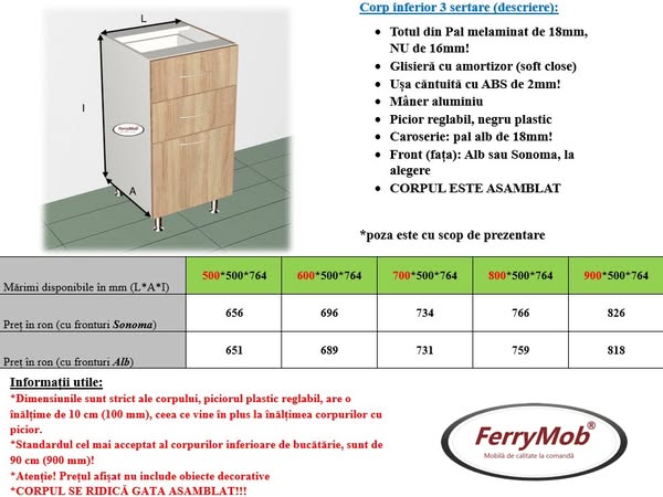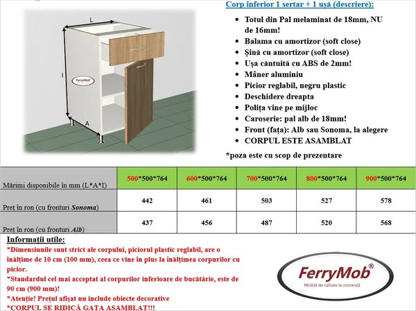 Exista posibilitatea de a alege din MAI MULTE CULORI PENTRU FRONT - la achiziționarea a minim 6 module (PREȚUL ESTE IDENTIC MATERIALULUI SONOMA)!!