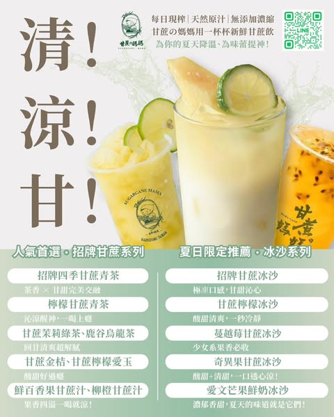 搜索关键词 甘蔗汁 新丰, 甘蔗饮品 外送, 冰火菠萝包, 下午茶 优惠, 新鲜 饮品, 天然 甘蔗汁, 台湾 饮品, 夏日 消暑, 团购 优惠, 甘蔗の媽媽优势 新鲜现榨甘蔗汁,天然清甜无添加,外送服务,团购优惠