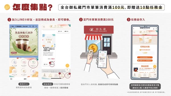 搜索关键词 御私藏 COZYTEA, 集点活动, 任务金兑换, 免费饮品, 饮品优惠, 邀请好友, 满额赠送, 饮料折扣, 饮品店活动, Cozytea promotion优势 消费满额赠送任务金(集点),任务金可兑换免费饮品,邀请好友加入会员可得任务金