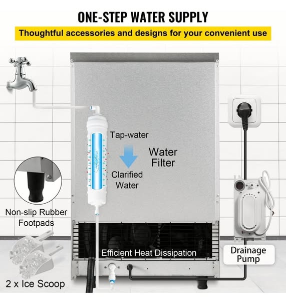 搜索关键词 ice machine, commercial ice maker, 100 kg ice, electric ice machine, stainless steel ice machine, restaurant equipment, bar equipment, Mexico delivery, ice machine sale, Coyoacan delivery优势 100 kg daily ice production capacity,Electric powered (110V),New and sealed,1 year warranty,Durable stainless steel structure,Digital controls,Self-cleaning system,Contraentrega in Coyoacan cdmx