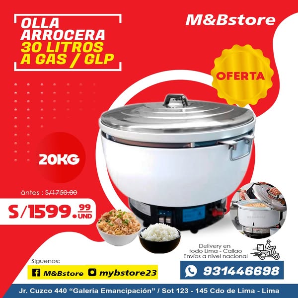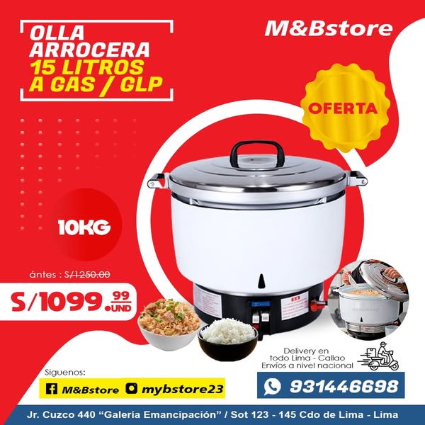 搜索关键词 Industrial rice cooker, gas rice cooker, restaurant equipment, commercial kitchen, Peruvian restaurants, kitchen appliances, food service equipment, GLP connection, GNV connection, arroz industrial优势 适用于餐厅,炸鸡店,中餐馆等,适用于液化石油气/天然气,多种容量选择,购买赠品