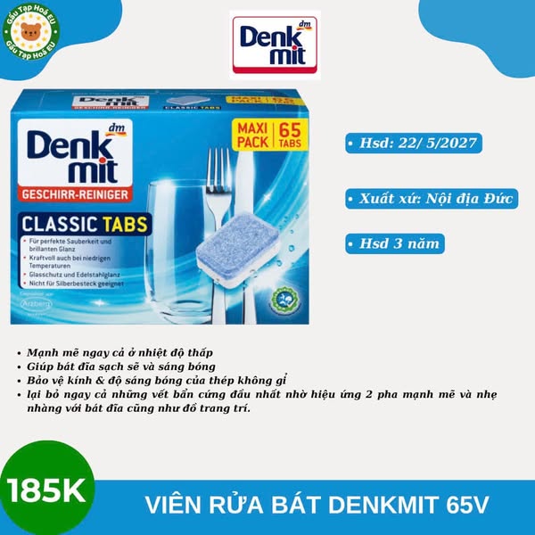 ○ Sử dụng: Phù hợp với các máy rửa bát hiện đại, giúp tẩy sạch hiệu quả vết bẩn cứng đầu.