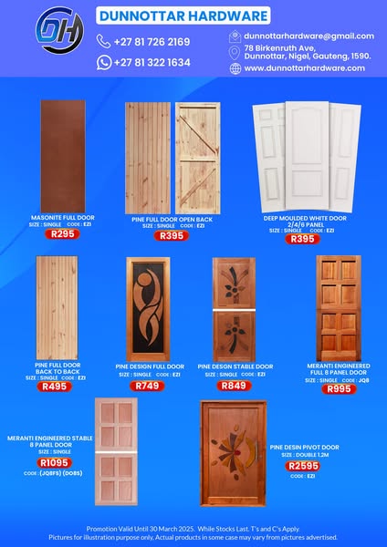 搜索关键词 home improvement sale, hardware store nigel, doors and tiles, pvc ceiling Gauteng, home renovation specials, dunnottar hardware, painting supplies, home decor ideas, tile installation services, hardware tools sale优势 Wide selection of home improvement products,Seasonal sale with unbeatable deals,Multiple contact options (WhatsApp, phone, online, physical store),Open every day, including weekends and holidays
